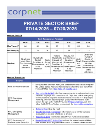 - NYCEM CorpNet Public-Private Sector Weekly Incident Brief 07-14-25
