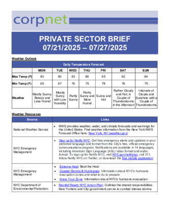 - NYCEM CorpNet Public-Private Sector Weekly Incident Brief 07-21-25