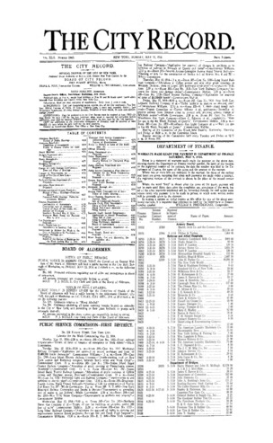 The City Record newspaper publishes notices which includes but is not limited to: public hearings and meetings, public auctions and sales, solicitations and awards and official rules proposed and adopted by city agencies. This is the City Record Newspaper for May 11, 1914.