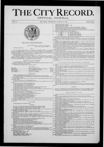 The City Record newspaper publishes notices which includes but is not limited to: public hearings and meetings, public auctions and sales, solicitations and awards and official rules proposed and adopted by city agencies. This is the City Record Newspaper for January 03, 1883.
