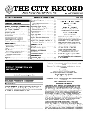 The City Record newspaper publishes notices which includes but is not limited to: public hearings and meetings, public auctions and sales, solicitations and awards and official rules proposed and adopted by city agencies.