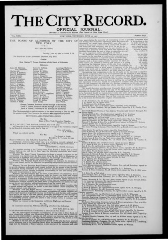 The City Record newspaper publishes notices which includes but is not limited to: public hearings and meetings, public auctions and sales, solicitations and awards and official rules proposed and adopted by city agencies. This is the City Record Newspaper for June 26, 1902.