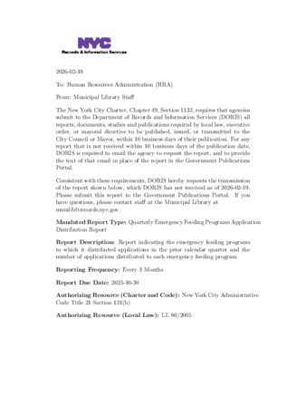 Late Notice - Quarterly Emergency Feeding Programs Application Distribution Report