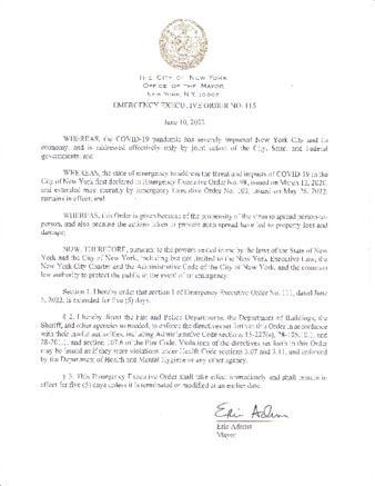 Emergency Executive Order No. 115, extends Emergency Executive Order No. 111, dated June 5, 2022, for five (5) days, if this relates to COVID-19.