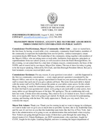 TRANSCRIPT FROM TUESDAY, AUGUST 9, 2022: MAYOR ERIC ADAMS HOSTS THIRD COMMUNITY CONVERSATION ON PUBLIC SAFETY