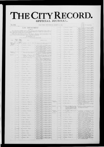 The City Record newspaper publishes notices which includes but is not limited to: public hearings and meetings, public auctions and sales, solicitations and awards and official rules proposed and adopted by city agencies. This is the City Record Newspaper for March 19, 1902.