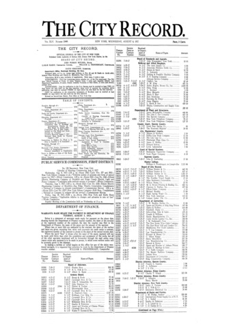 The City Record newspaper publishes notices which includes but is not limited to: public hearings and meetings, public auctions and sales, solicitations and awards and official rules proposed and adopted by city agencies. This is the City Record Newspaper for August 08, 1917.