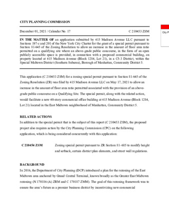 City Planning Commission Report (C 210453 ZSM)