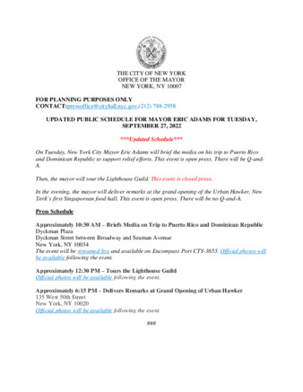 UPDATED PUBLIC SCHEDULE FOR MAYOR ERIC ADAMS FOR TUESDAY, SEPTEMBER 27, 2022