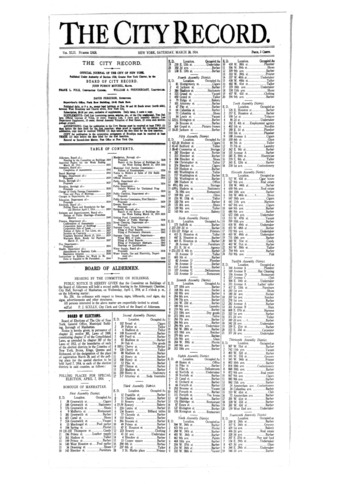 The City Record newspaper publishes notices which includes but is not limited to: public hearings and meetings, public auctions and sales, solicitations and awards and official rules proposed and adopted by city agencies. This is the City Record Newspaper for March 28, 1914.