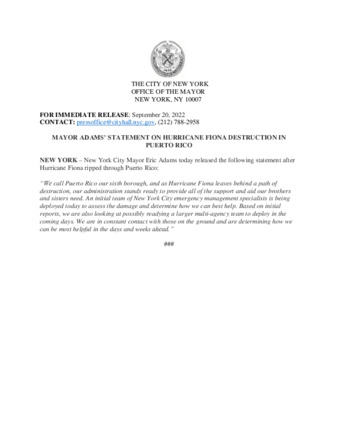 MAYOR ADAMS’ STATEMENT ON HURRICANE FIONA DESTRUCTION IN PUERTO RICO