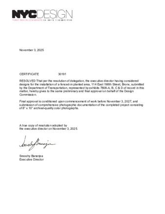 Public Design Commission Minutes and Certificates, November 17, 2025 Review cycle