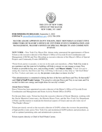 MAYOR ADAMS APPOINTS DAWN TOLSON, TREY MOYNIHAN AS EXECUTIVE DIRECTORS OF MAYOR’S OFFICE OF CITYWIDE EVENT COORDINATION AND MANAGEMENT