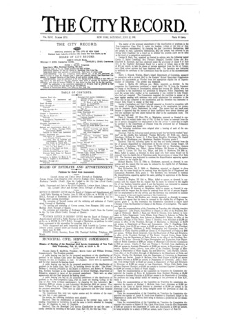 The City Record newspaper publishes notices which includes but is not limited to: public hearings and meetings, public auctions and sales, solicitations and awards and official rules proposed and adopted by city agencies. This is the City Record Newspaper for June 22, 1918.
