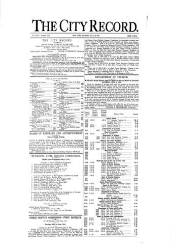 The City Record newspaper publishes notices which includes but is not limited to: public hearings and meetings, public auctions and sales, solicitations and awards and official rules proposed and adopted by city agencies. This is the City Record Newspaper for July 10, 1916.