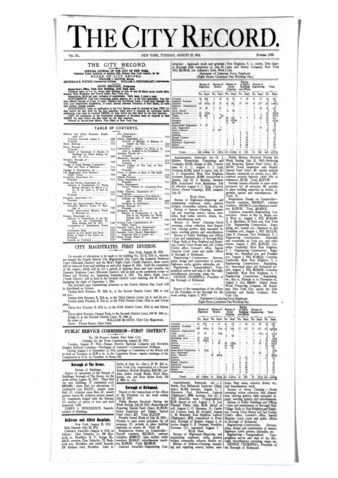 The City Record newspaper publishes notices which includes but is not limited to: public hearings and meetings, public auctions and sales, solicitations and awards and official rules proposed and adopted by city agencies. This is the City Record Newspaper for August 27, 1912.