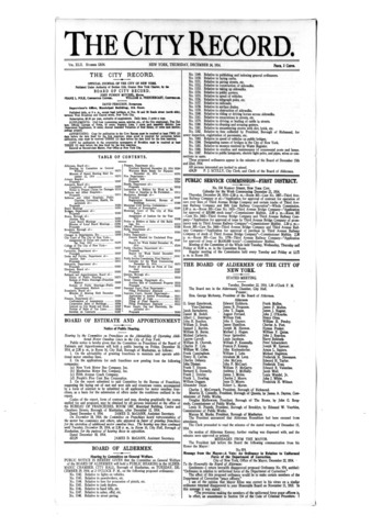 The City Record newspaper publishes notices which includes but is not limited to: public hearings and meetings, public auctions and sales, solicitations and awards and official rules proposed and adopted by city agencies. This is the City Record Newspaper for December 24, 1914.