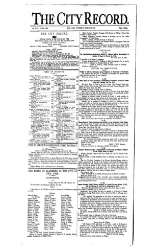 The City Record newspaper publishes notices which includes but is not limited to: public hearings and meetings, public auctions and sales, solicitations and awards and official rules proposed and adopted by city agencies. This is the City Record Newspaper for March 28, 1918 with supplement.