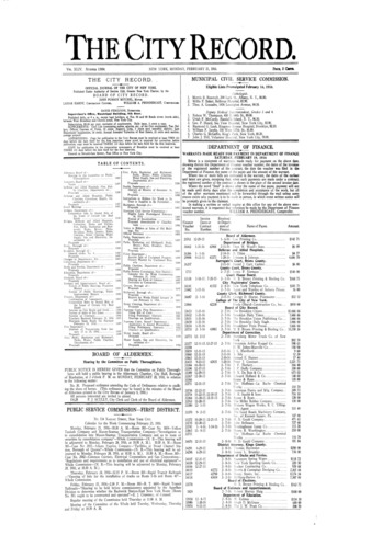 The City Record newspaper publishes notices which includes but is not limited to: public hearings and meetings, public auctions and sales, solicitations and awards and official rules proposed and adopted by city agencies. This is the City Record Newspaper for February 21, 1916.