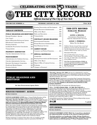 The City Record newspaper publishes notices which includes but is not limited to public hearings and meetings, public auctions and sales, solicitations, and awards and official rules proposed and adopted by city agencies.