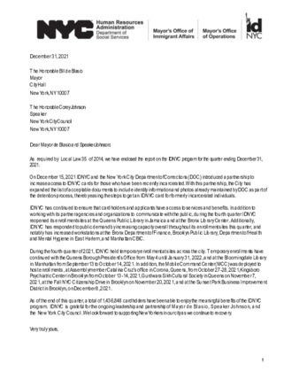 Municipal Identification Card Program (IDNYC) Q4- October-December 2021