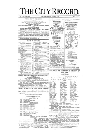 The City Record newspaper publishes notices which includes but is not limited to: public hearings and meetings, public auctions and sales, solicitations and awards and official rules proposed and adopted by city agencies. This is the City Record Newspaper for October 05, 1916.
