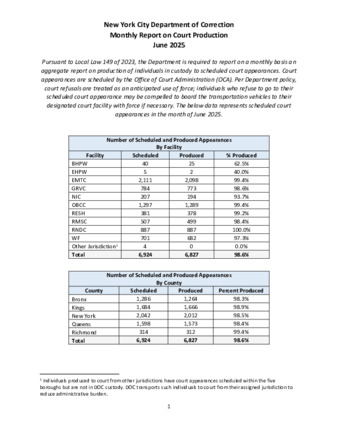 Pursuant to Local Law 149 of 2023, this report provides information regarding court production of incarcerated individuals.
