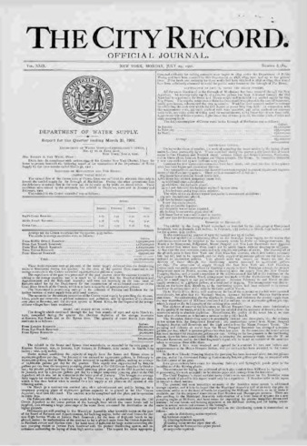 The City Record newspaper publishes notices which includes but is not limited to: public hearings and meetings, public auctions and sales, solicitations and awards and official rules proposed and adopted by city agencies. This is the City Record Newspaper for July 29, 1901.