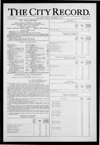 The City Record newspaper publishes notices which includes but is not limited to: public hearings and meetings, public auctions and sales, solicitations and awards and official rules proposed and adopted by city agencies. This is the City Record Newspaper for December 10, 1907.