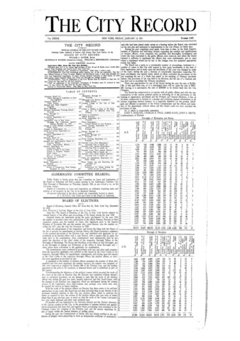 The City Record newspaper publishes notices which includes but is not limited to: public hearings and meetings, public auctions and sales, solicitations and awards and official rules proposed and adopted by city agencies. This is the City Record Newspaper for January 13, 1911.