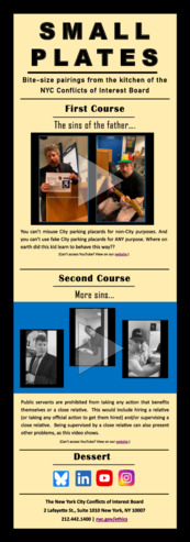 Periodic newsletter containing bite-sized items and media from the New York City Conflicts of Interest Board.