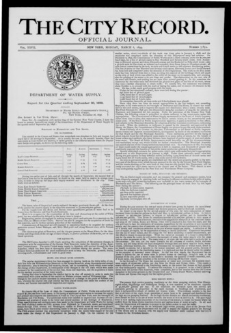 The City Record newspaper publishes notices which includes but is not limited to: public hearings and meetings, public auctions and sales, solicitations and awards and official rules proposed and adopted by city agencies. This is the City Record Newspaper for March 06, 1899.