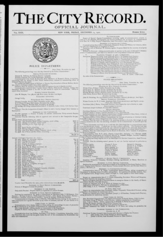 The City Record newspaper publishes notices which includes but is not limited to: public hearings and meetings, public auctions and sales, solicitations and awards and official rules proposed and adopted by city agencies. This is the City Record Newspaper for December 13, 1901.