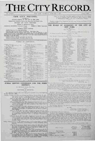 The City Record newspaper publishes notices which includes but is not limited to: public hearings and meetings, public auctions and sales, solicitations and awards and official rules proposed and adopted by city agencies. This is the City Record Newspaper for February 04, 1909.
