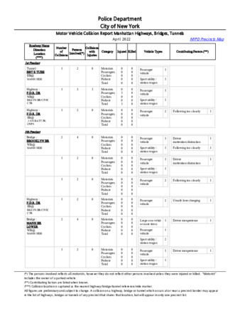 - MV COLLISIONS BY HIGHWAY/BRIDGE/TUNNEL