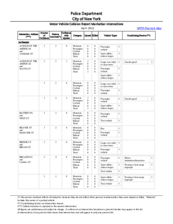 Pursuant to Admin Code Sect. 14-153(a), this monthly report contains 1) the number of moving violation summonses issued; 2) the number of traffic crashes; and 3) the number of traffic-related fatalities and injuries