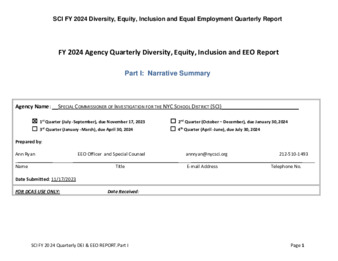 Quarterly Diversity, Equity, Inclusion and Equal Employment Opportunity Plan (DEI-EEO) for Fiscal Year 2024 Quarter 1 for the Special Commissioner of Investigation for the NYC School District (SCI)