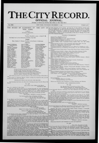The City Record newspaper publishes notices which includes but is not limited to: public hearings and meetings, public auctions and sales, solicitations and awards and official rules proposed and adopted by city agencies. This is the City Record Newspaper for December 11, 1902.