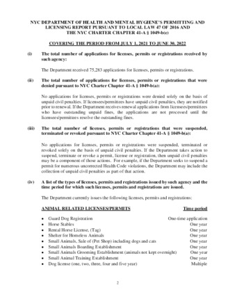 The Health Department’s annual report on Permitting and Licensing is mandated by LL47 of 2016 and summarizes the Health Department’s permitting and licensing activities from July 1, 2021 through June 30, 2022.