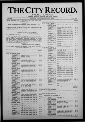 The City Record newspaper publishes notices which includes but is not limited to: public hearings and meetings, public auctions and sales, solicitations and awards and official rules proposed and adopted by city agencies. This is the City Record Newspaper for September 10, 1902.