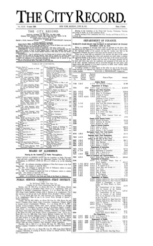 The City Record newspaper publishes notices which includes but is not limited to: public hearings and meetings, public auctions and sales, solicitations and awards and official rules proposed and adopted by city agencies. This is the City Record Newspaper for June 28, 1915.