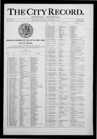 The City Record newspaper publishes notices which includes but is not limited to: public hearings and meetings, public auctions and sales, solicitations and awards and official rules proposed and adopted by city agencies. This is the City Record Newspaper for September 26, 1900.