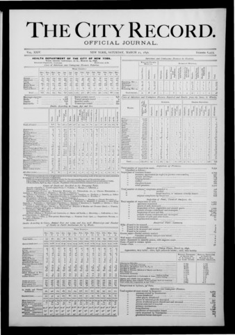 The City Record newspaper publishes notices which includes but is not limited to: public hearings and meetings, public auctions and sales, solicitations and awards and official rules proposed and adopted by city agencies. This is the City Record Newspaper for March 21, 1896.