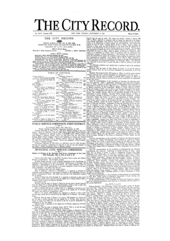 The City Record newspaper publishes notices which includes but is not limited to: public hearings and meetings, public auctions and sales, solicitations and awards and official rules proposed and adopted by city agencies. This is the City Record Newspaper for September 17, 1918.