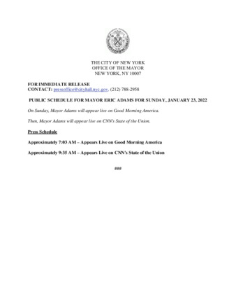 PUBLIC SCHEDULE FOR MAYOR ERIC ADAMS FOR SUNDAY, JANUARY 23, 2022