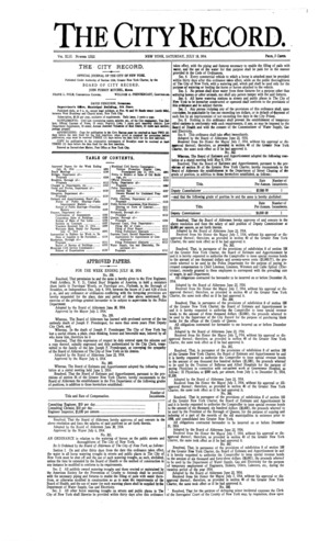 The City Record newspaper publishes notices which includes but is not limited to: public hearings and meetings, public auctions and sales, solicitations and awards and official rules proposed and adopted by city agencies. This is the City Record Newspaper for July 18, 1914.
