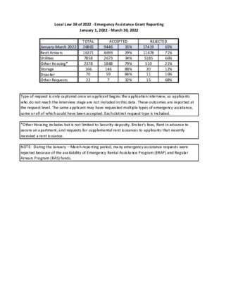 NYC Human Resources Administration's Emergency Assistance Grant Reporting