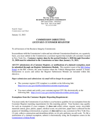 COMMISSION DIRECTIVE: LICENSEE CUSTOMER REGISTER