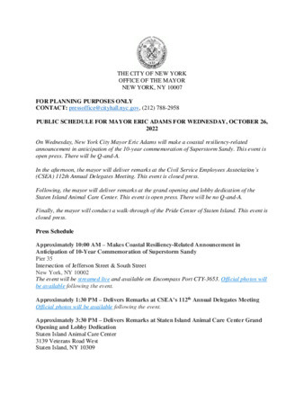 PUBLIC SCHEDULE FOR MAYOR ERIC ADAMS FOR WEDNESDAY, OCTOBER 26, 2022
