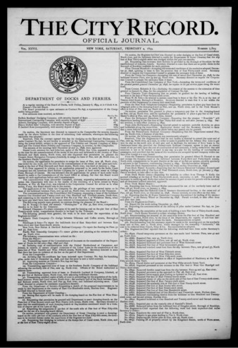 The City Record newspaper publishes notices which includes but is not limited to: public hearings and meetings, public auctions and sales, solicitations and awards and official rules proposed and adopted by city agencies. This is the City Record Newspaper for February 04, 1899.